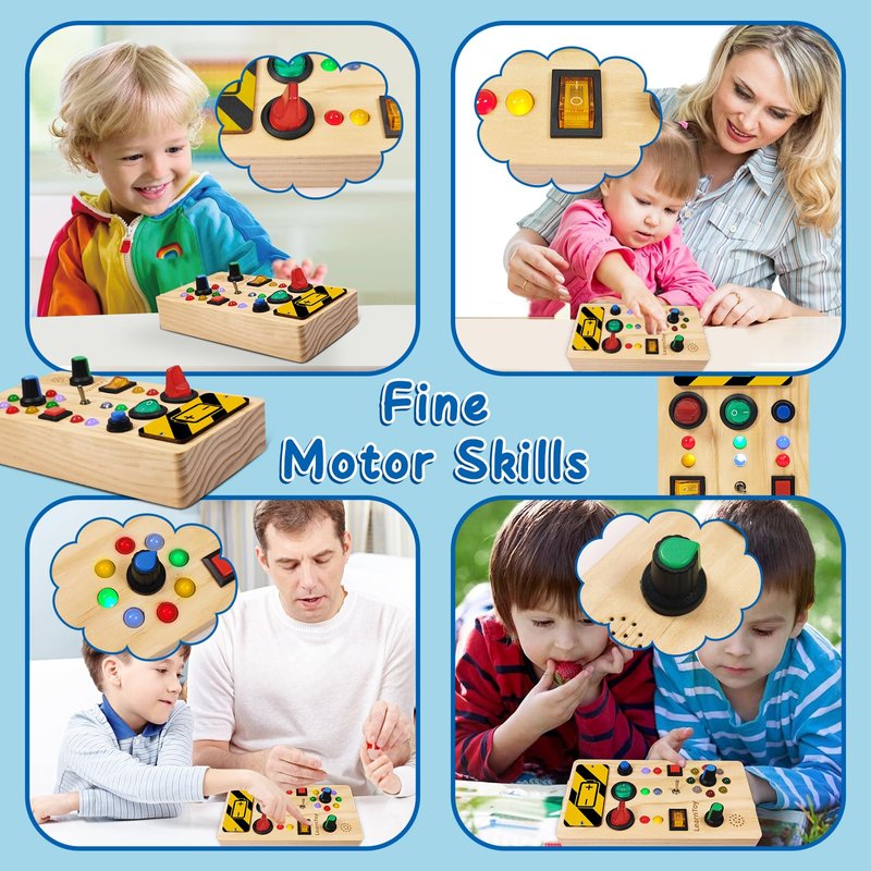 - 【Sensory Toys】: The well-designed busy board incorporates LED lights into its switches, each corresponding to a different color or style. The carefully adjusted brightness ensures an optimal visual experience for the child, promoting sensory exploration and enhancing color recognition skills
