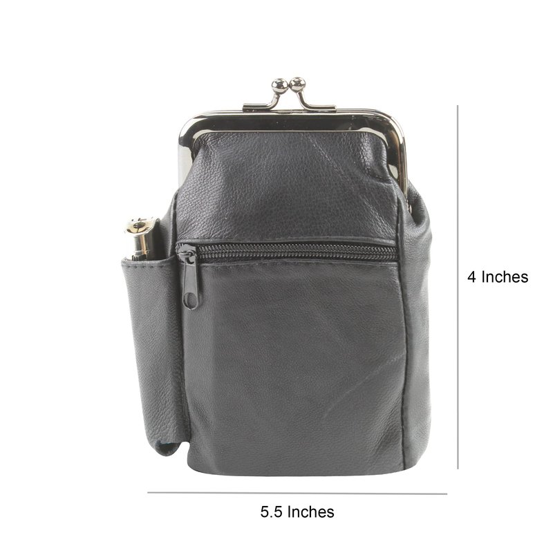 Leather Impressions Leather Case with Twist Clasp, Small Zipper Wallet for Essentials Like Card, Cash or Keys, Pocket Wallets for Women & Men Black 5"x3"