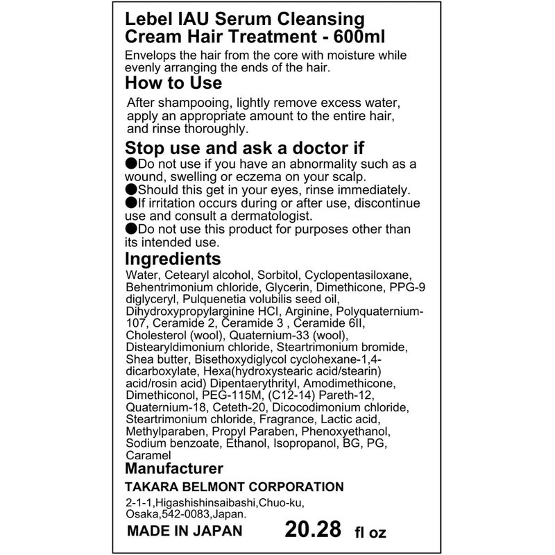 Lebel IAU Serum Cleansing Cream Hair Treatment - 600ml