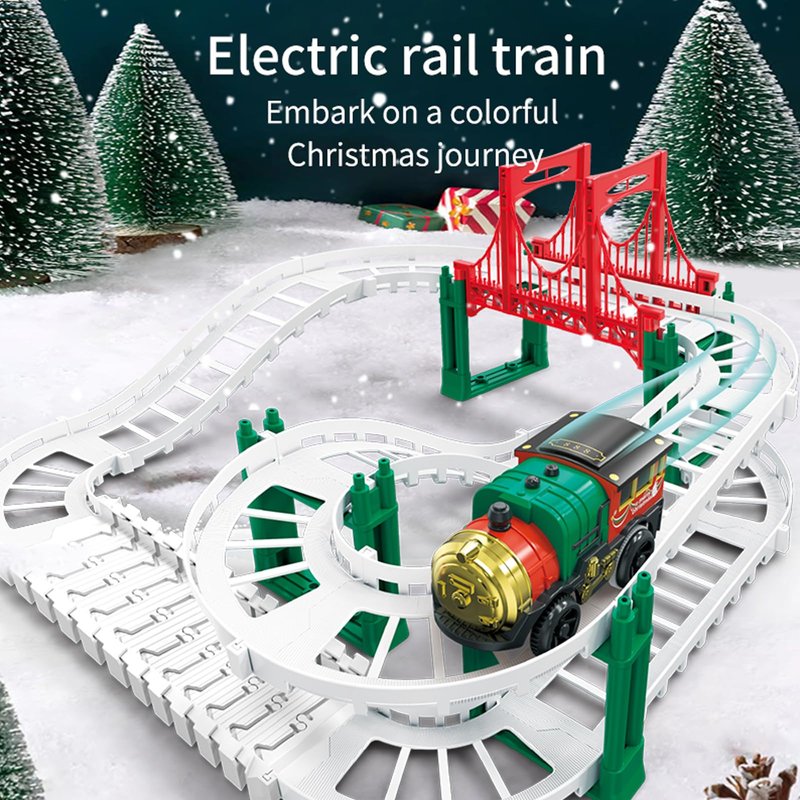 Introducing our Christmas Train Track Set, the perfect holiday gift for kids of all ages! This set includes 38 accessories so your kids can create their own holiday train display. Designed for easy battery installation and DIY assembly of the tracks, this train set offers endless hours of imaginative play for boys and girls. It is suitable for ages 3-5, 4-6 and 5-8, making it a versatile toy for all ages. Our Christmas train track set is not only a fun toy, but also a great way to improve children's motor skills and creativity. The vibrant Christmas colors and holiday-themed design will add a special touch to your Christmas decorations as it can be set up around the tree or as a stand-alone display. Made with safety in mind, this train set is made of durable and non-toxic quality materials. Train toys for a complete train experience for your little conductor. Whether you're looking for a Christmas gift or a toy to entertain your child, our Christmas train track set is the perfect choice. Get ready to have fun with Christmas track cars and create unforgettable holiday memories with this delightful train set!