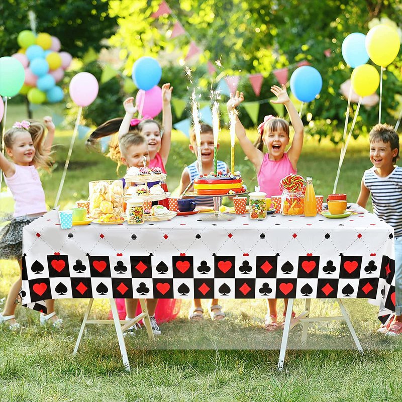 - Easy to clean: casino party tablecovers cleaning up the mess after party immediately, you don’t worry about how to clean up the mess, just throw it into the rubbish bin after the party, save your time and enjoy the party with your kids