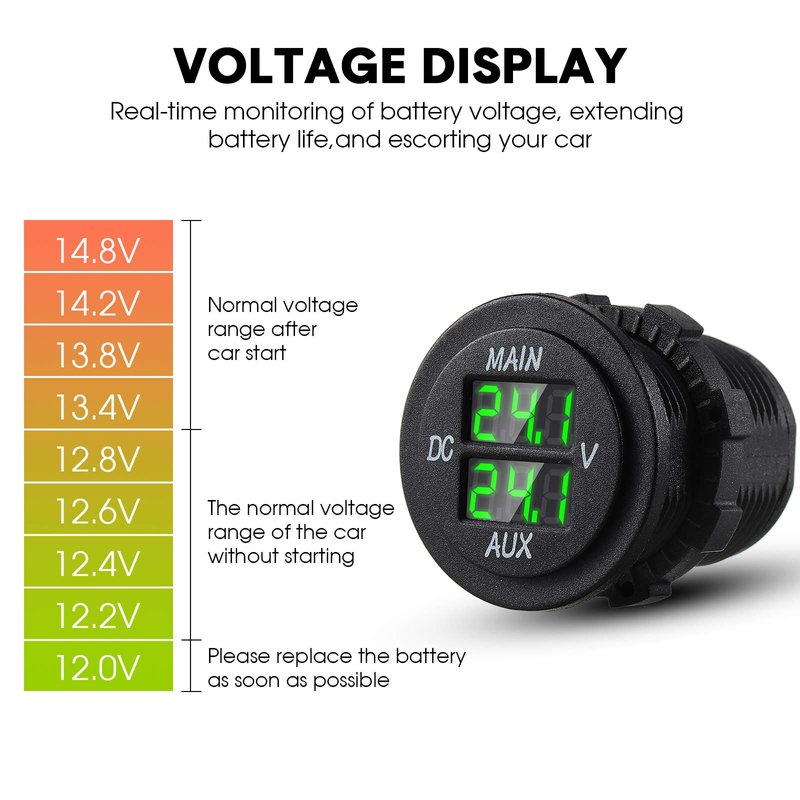 - Practical LED digital display: the double voltmeters are embedded in 3-bit LED digital display, clearly shows you the current precise readings of working volts, well helps you to early notice your car voltage condition