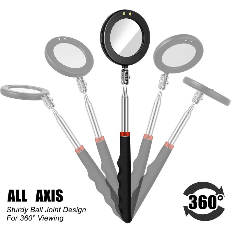 - Easy to use: it is very suitable for tool manufacturers, mechanics, inspectors, dentists, makeup artists and mechanics to enter areas, corners and crevices that are difficult to reach; The telescopic rod is easy to extend and retract, and the rotating neck mirror allows you to adjust the position of the mirror and observe each small area