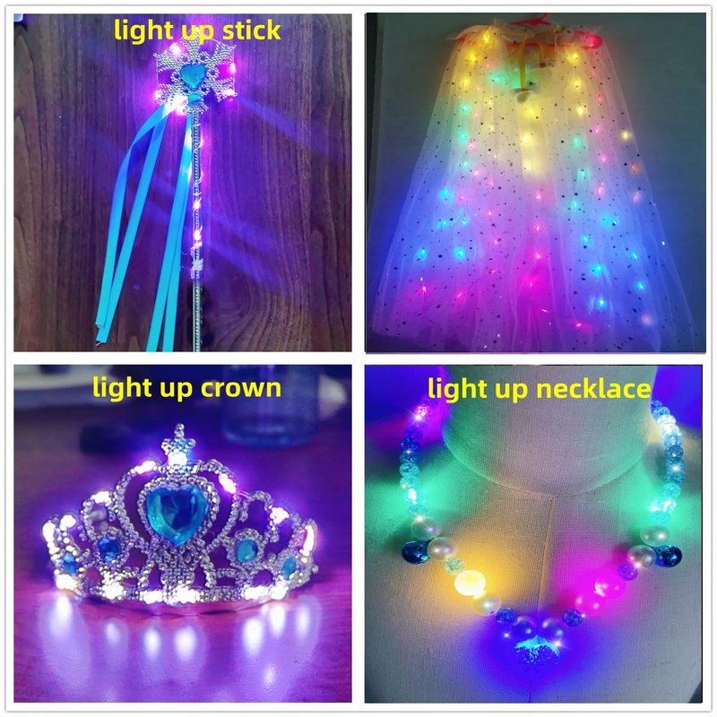 - Include: Kids Play Jewelry accesseries can light up, light up crow, light tiara,light up necklace,glow cape.