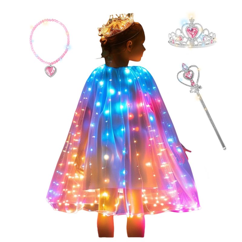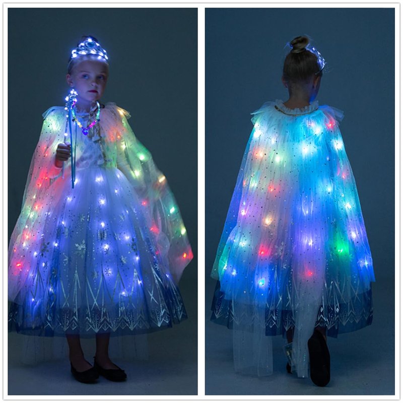 - Girls Princess cape with shiny led lights, present batteries, with this LED light up desgin no girls do not like it, she will wear it and not take off.