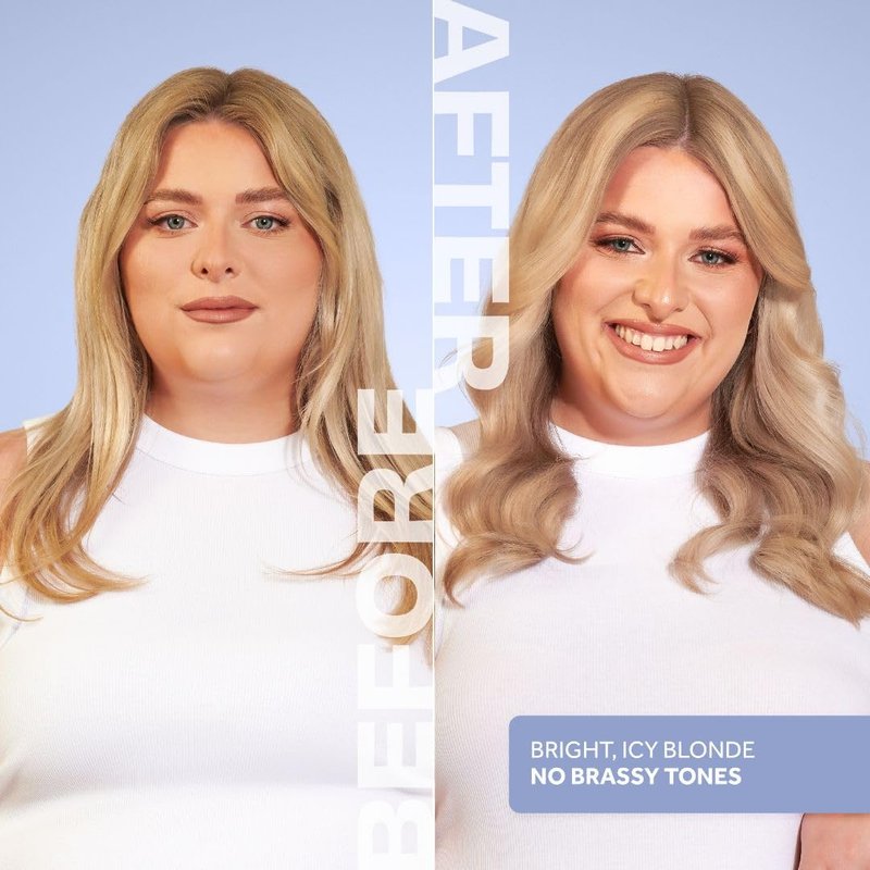 - THE RESULTS. Blonde tones are boosted and brass-free, and hair feels beautifully nourished.