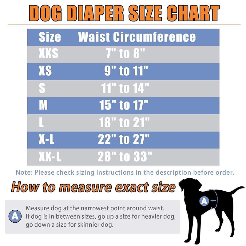 - Small Dog Diapers for Male Dogs - Leekalos washable male dog diapers are ideal for extra small dogs and puppies, waist size 11" to 14". Don’t guess your dog’s size. Before order male diapers for dogs, please measure your dog's waist right in front of the back legs to ensure a great fit, and loose some space when you measure your dog to ensure more comfortable.