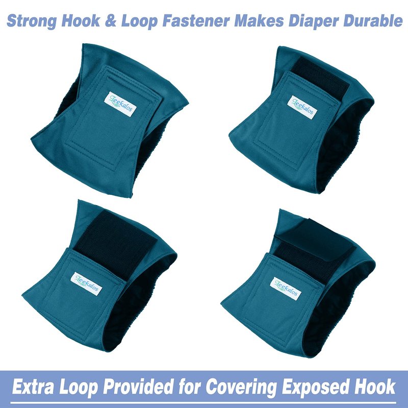 - Adjustable Hoop&loop Closure - Durable hoop&loop tapes are quick and easy for you to put on and put off pet diapers . It won't stick to your pet fur. Your pet would enjoy wearing dog wrap and the male dog belly wrap would stay in place well when your pet walking, running and jumping. Soft elastics edges provide extra snug fit around the waist.