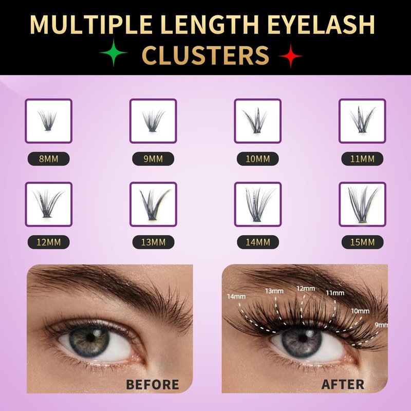 - Style Flexibility with Eyelash Clusters: Our eyelash clusters offer the versatility to create a range of looks, from subtle to bold. These eyelash extensions allow you to customize your lash look, whether you prefer a minimalist approach or a more glamorous statement. The ease of use makes them ideal for both makeup enthusiasts and those new to the world of false lashes.
