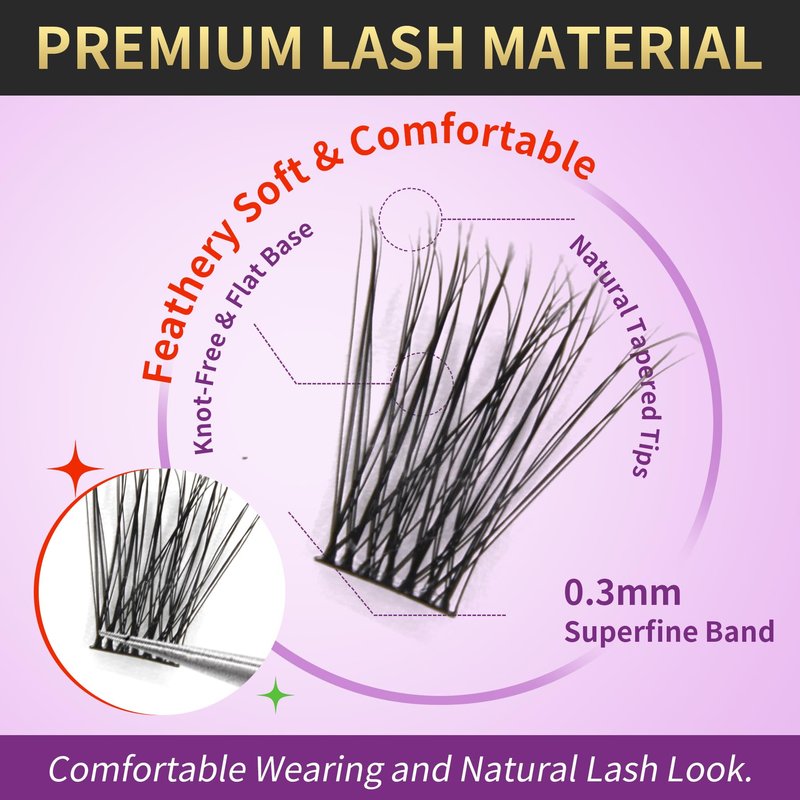 - Simplified Application for a Seamless Finish: Our fake eyelashes are designed for simplicity, ensuring that you can achieve a natural look with minimal effort. The eyelash clusters are easy to place along your lash line, providing a seamless blend with your natural lashes for a look that appears as if it were born with you.