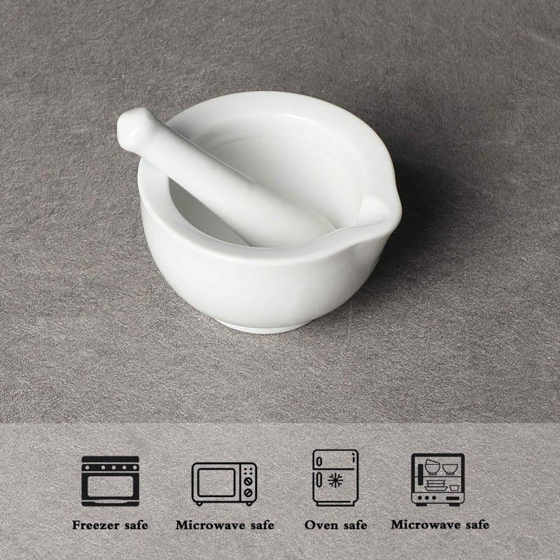 - [Practicability]-Easily picked up with one hand, The porcelain mortar interior is unpolished and rough for better grinding. Also the ceramic mortar absorbs no flavor,can stick stuff you crush, easily to take out all you crush.You can also easily take out all you crush. Combine the small gaps on the porcelain to pour out easily.