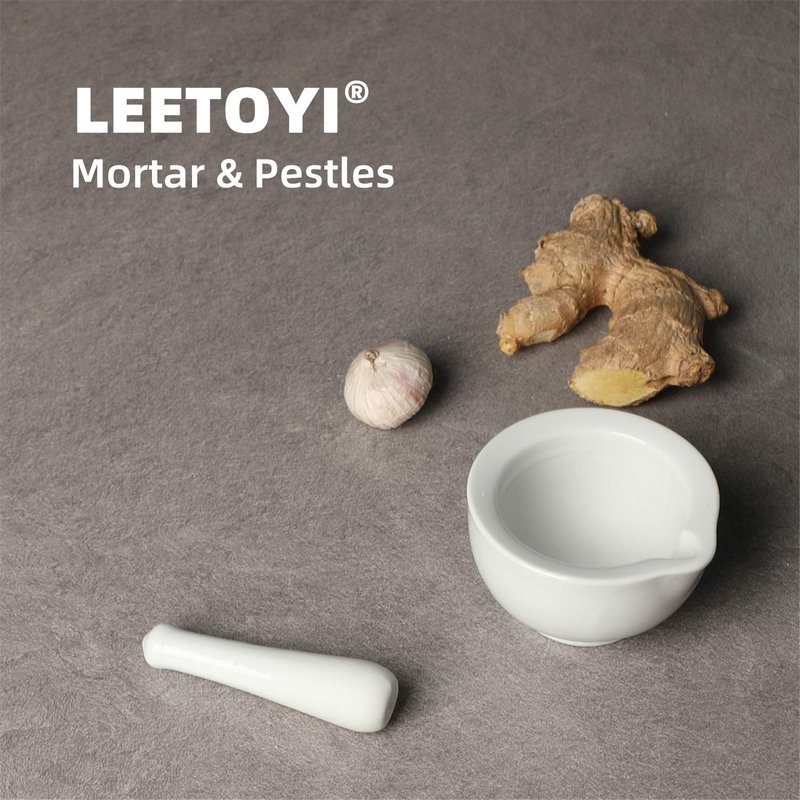 LEETOYI Porcelain Mortar and Pestle, Ceramic Herb Grinder Pill Crusher Set, 3.3-inch White
