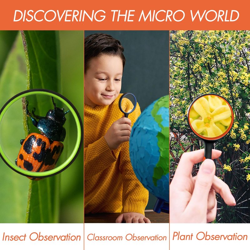 - Widely Used: It will bring kids so much fun when they explore nature and observe animals, insects, plants, leaves. Also make it easier for the elder to view fine prints, food labels, medicine bottles, books and seals.