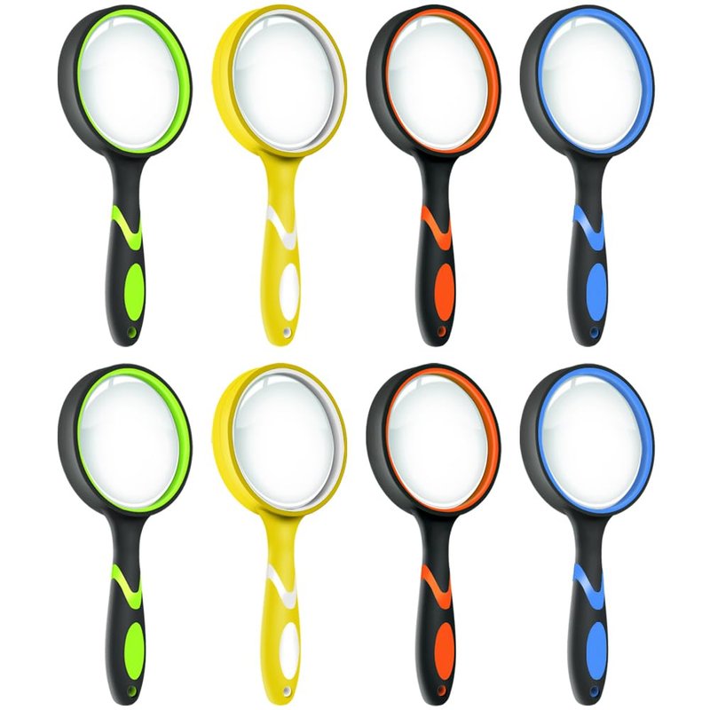 Leffis 8 Pack Magnifying Glass, 50mm 10X Magnifying Glasses Lens Reading Magnifier for Kids and Seniors, Non-Slip Handheld Magnifying Glass for Close Work, Classroom Science and Nature Exploration