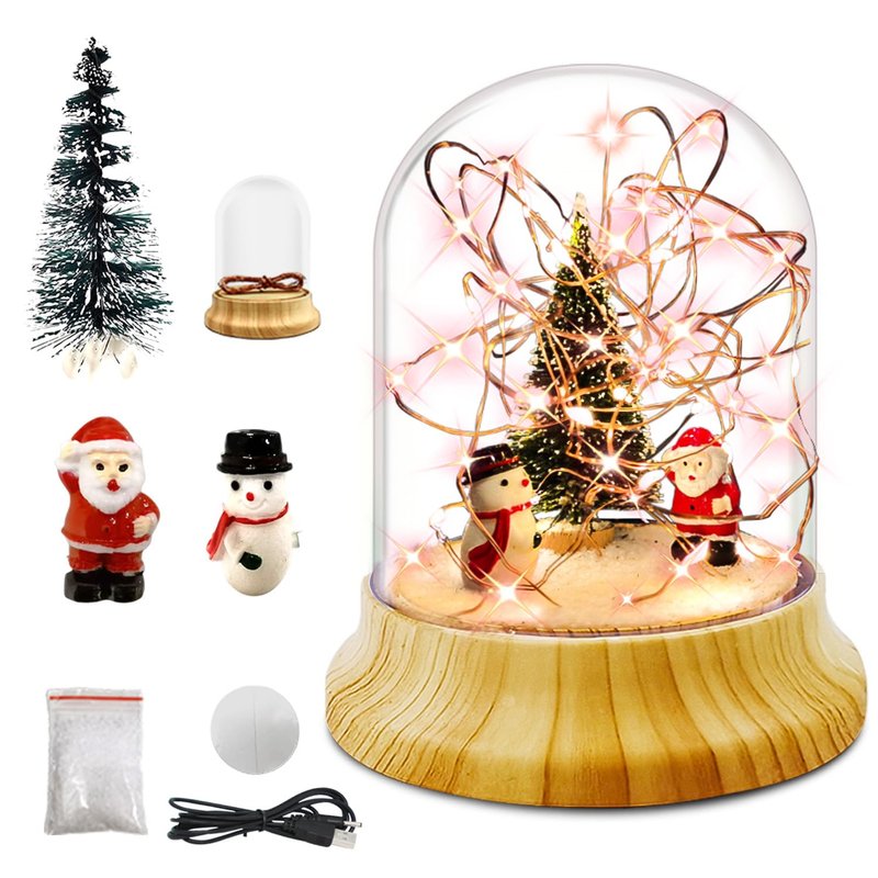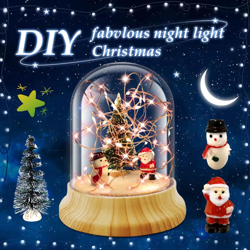 - SET INCLUDES: Arts and crafts night light include 1 USB cable, 1 Santa claus, 1 Christmas snowman, 1 Tree, 1 Packet of white tree powder, 1 crystal jar, 1 LED string light, 2 double-sided nano-adhesive, create to belong to your own night light. Creative handmade light is very fun crafts that are loved by all ages.