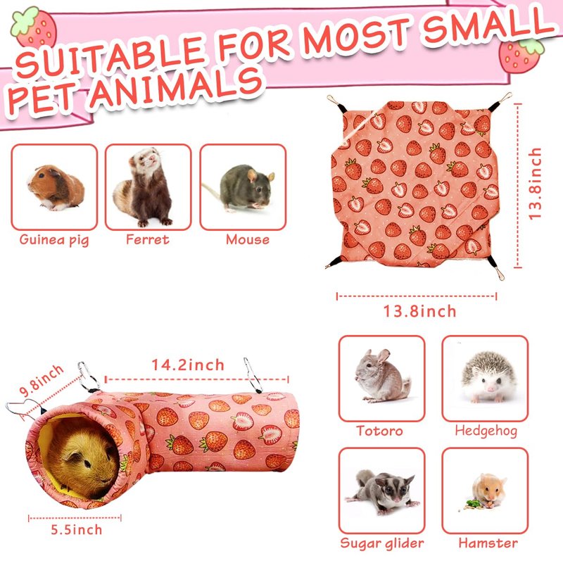LEFTSTARER Pet Small Animal Hanging Hammock Ferret Bunkbed Cage Toy for Hamster Rat Sugar Glider Parrot Guinea Pig Hideout Play Sleep (Strawberry)