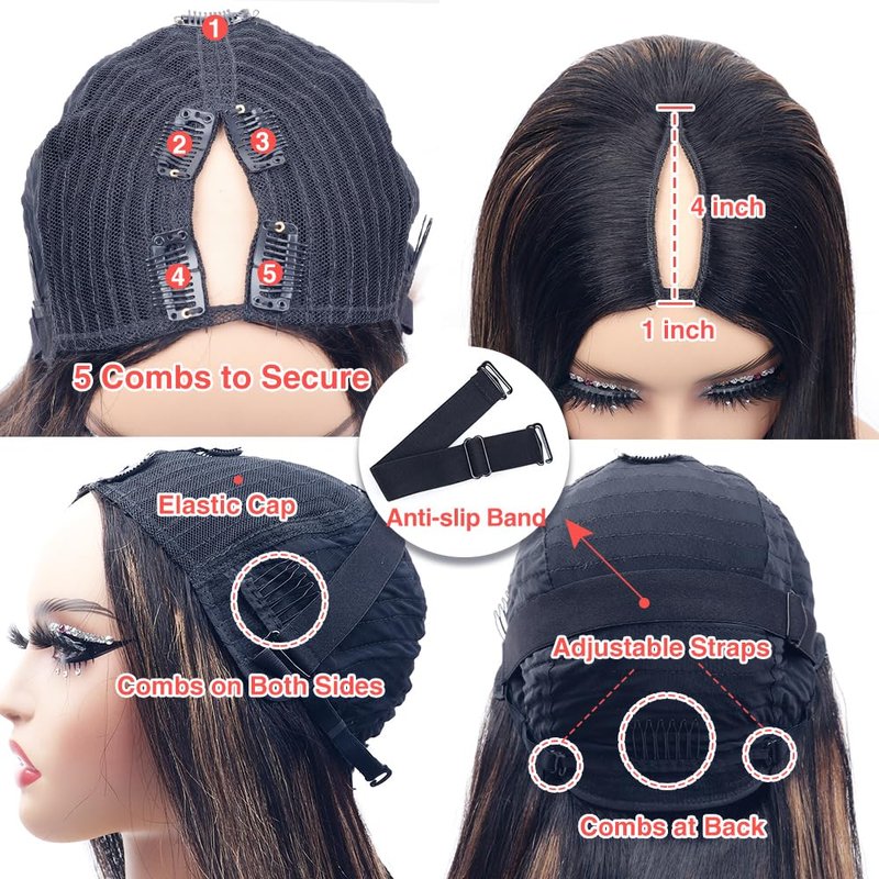 - š¹ćHair Materialć#FB30 Highlight V Shape Thin Part Wigs, Ombre Upgrade U Part Wig. Made from 100% Unprocessed Brazilian Virgin Human Hair Wigs Natural Color. Can be re dyed, permed, bleached, styled as your own hair. Bouncy, soft and comfortable.
