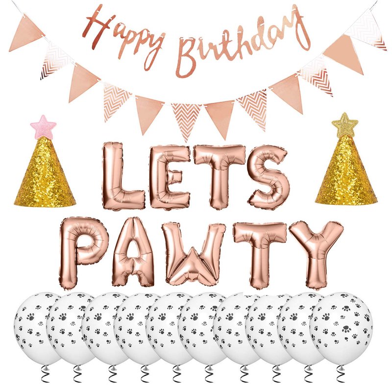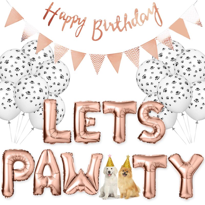 Legendog Dog Birthday Party Supplies Dog Paw Print Balloons Cat Birthday Hat Happy Birthday Banner Foil Balloons Lets Pawty Letters Balloons Decorations (Rose Red)