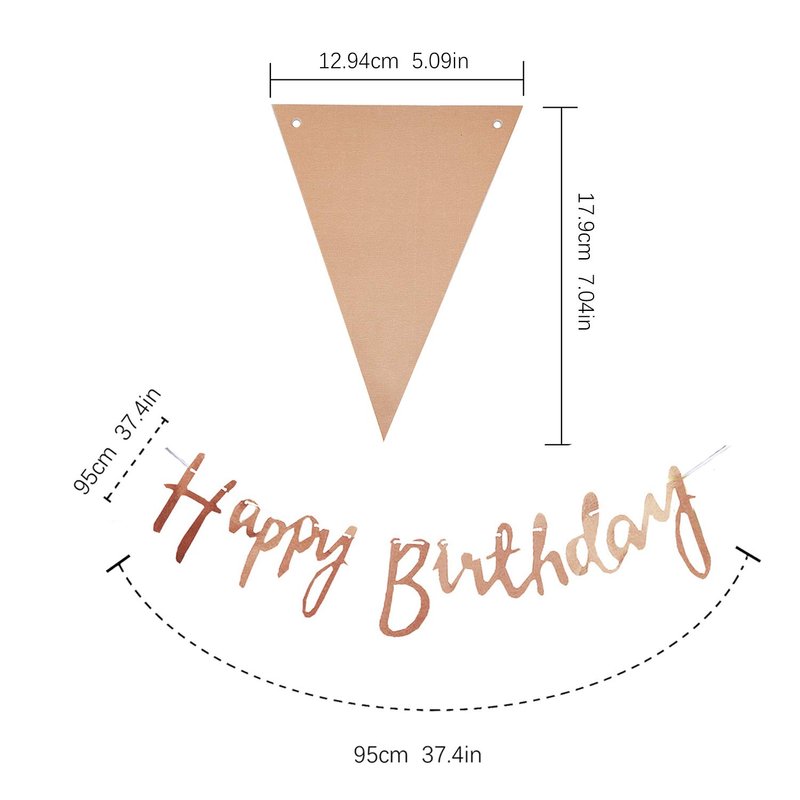 - Single Size: Latex balloon: Diameter 12in, 10pcs; Foil balloon: L*W: 39*29cm(15.35*11.42in), 9pcs; Happy birthday banner: String length 2m(6.56ft), one letter height 13-18.5cm(5.12-7.28in), 1 piece; Triangle flag banner: String length 3m(9.84ft), one flag: L*W: 18*13cm(7.09*5.12in), 1 piece; Cone hat: Diameter 7.5cm(2.95in), height 11.5cm(4.53in), 2pcs