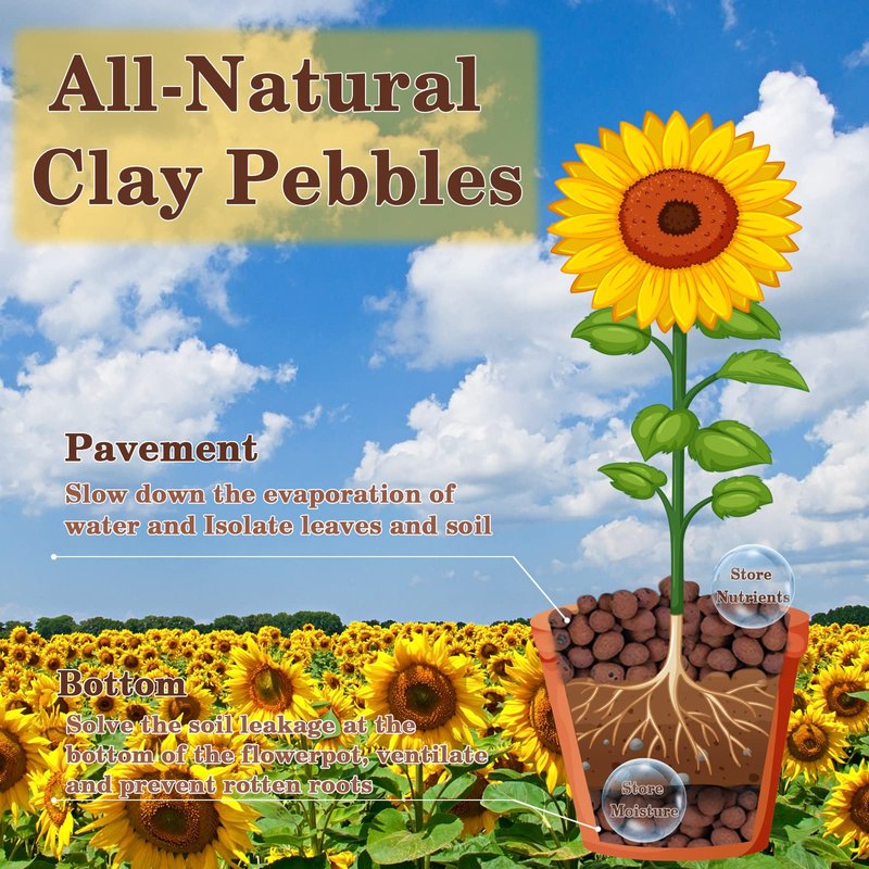 - 【All Natural Expanded Clay Pebbles】Made of natural clay, baked at high temperature into round pellets, pH neutral helps remove excess acidity, sturdy, no odor, not easy to break, you can safely use it in your garden to help plants grow healthier and faster.