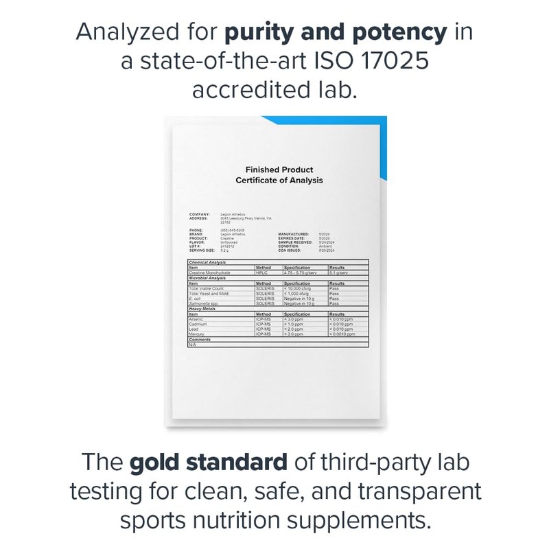 - Micronized Creatine Monohydrate Powder: Achieve your fitness goals & optimize your muscle recovery with unflavored creatine from LEGION; With a clinically effective dose of creatine monohydrate this creatine powder can help boost muscle mass, improve endurance, and reduce soreness after your workout.