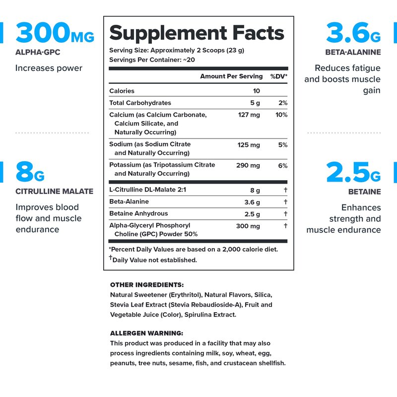- Get the only naturally sweetened and flavored stim free pre workout with clinically effective doses of 4 ingredients that increase strength and stamina and reduce fatigue without any jitters or post-workout crash.
