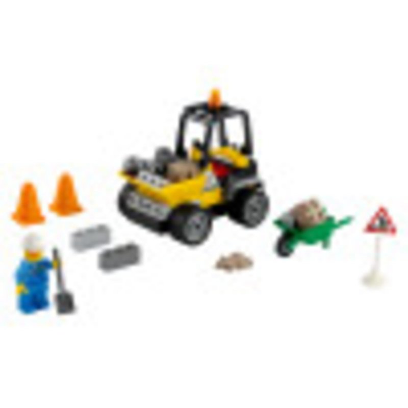 - This LEGO City Roadwork Truck (60284) playset includes a front-end loader, wheelbarrow, traffic cones, roadworks sign and a shovel, plus a worker minifigure and rat figure