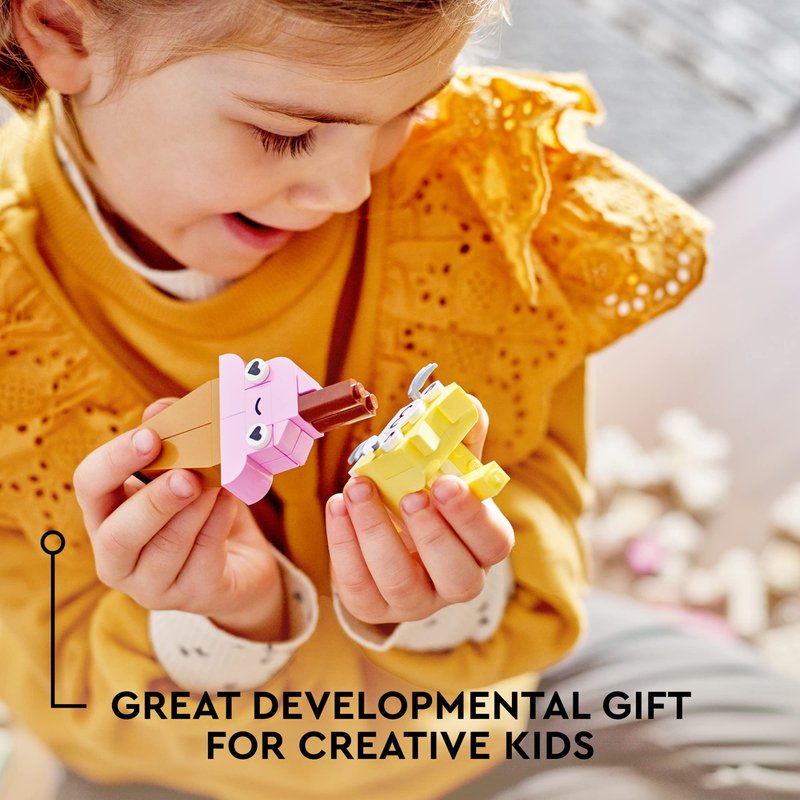 LEGO Classic Creative Pastel Fun Bricks Box 11028, Building Toys for Kids, Girls, Boys Ages 5 Plus with Models; Ice Cream, Dinosaur, Cat & More, Creative Learning Gift