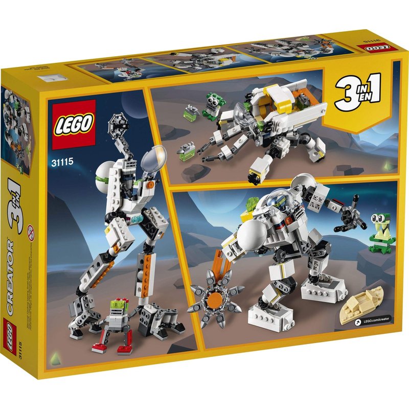 - This LEGO Creator 3in1 Space Mining Mech (31115) building set lets imaginative kids build any of 3 exciting models: a mech toy, cargo carrier and space robot toy