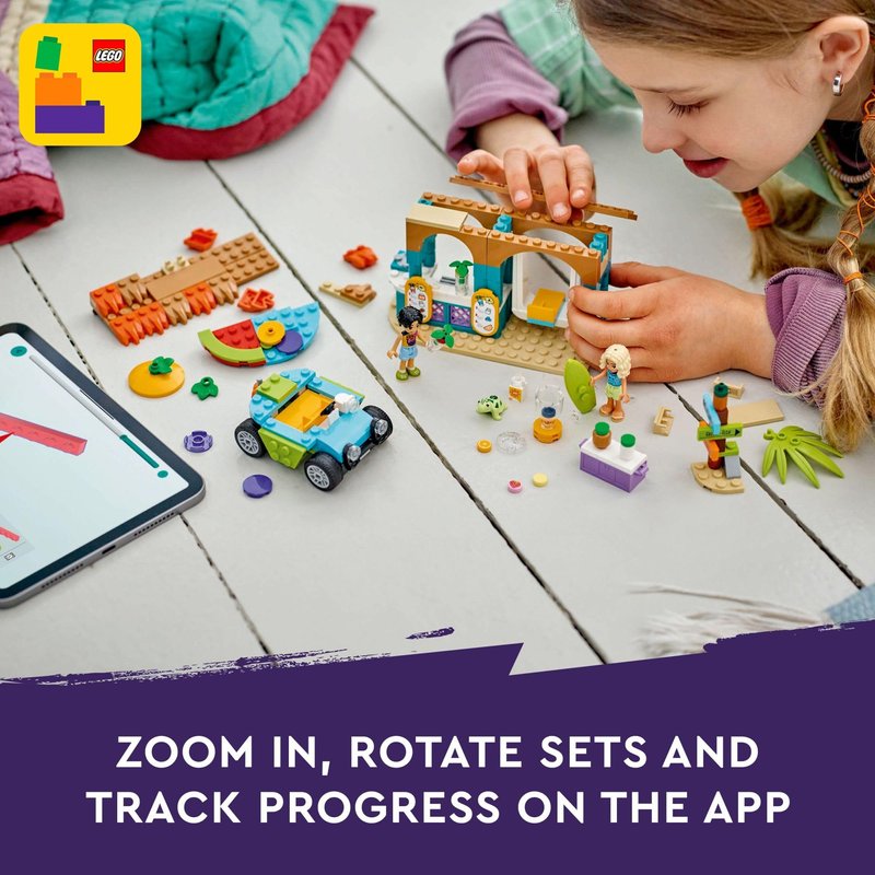 - Kids’ play food set – Girls and boys ages 6 and up can enjoy smoothie-making fun at the beach with this LEGO Friends Beach Smoothie Stand pretend play beach toy, which includes 2 mini dolls and a turtle figure