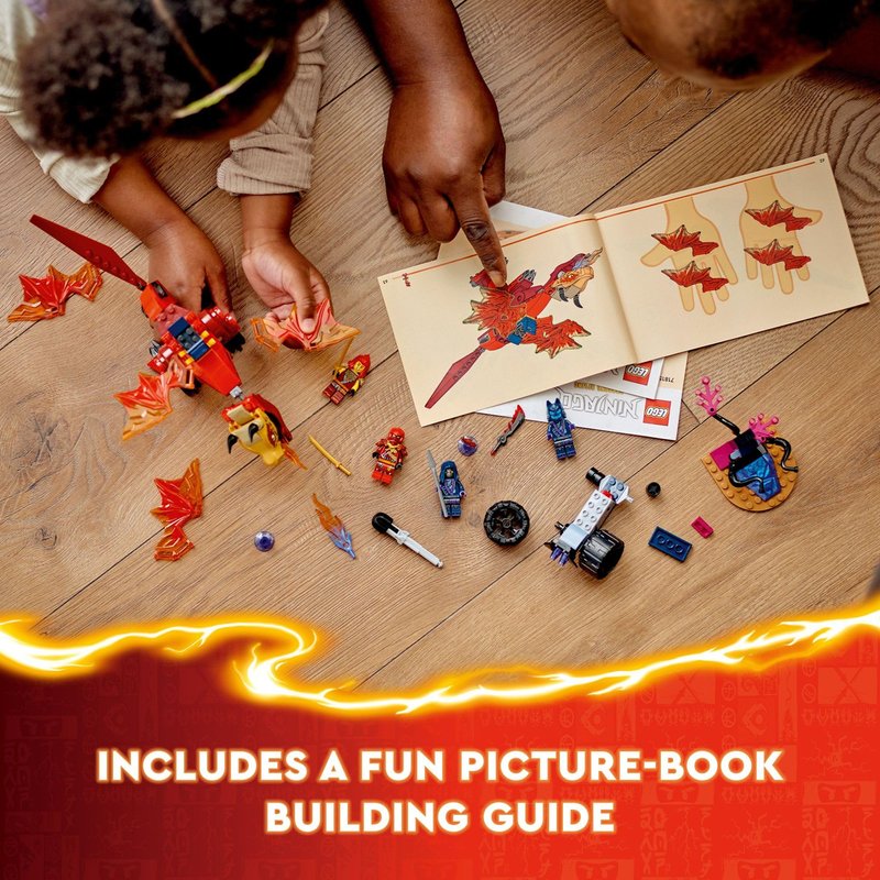 - Learn-to-build adventure playset – Kids aged 4 years old and up can be introduced to ninja characters and the joy of building with the LEGO NINJAGO Kai’s Source Dragon Battle toy