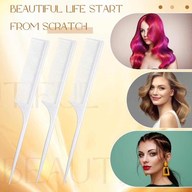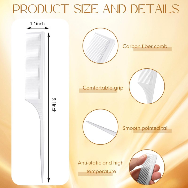 Leinuosen 3 Pack Tail Comb Carbon Fiber Rat Tail Styling Comb Heat Resistant Anti Static Teasing Comb for Back Combing Root Teasing Adding Volume Evening Styling (White)