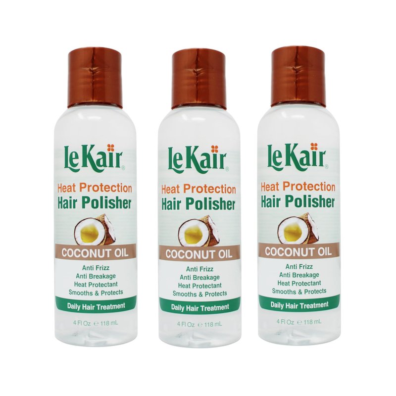 LeKair High Heat Protection Hair Polisher - Coconut Oil, Anti Frizz, Anti Breakage, Heat Protectant, Smooths & Protects, Daily Hair Treatment 4 Fl Oz - 3 Pack