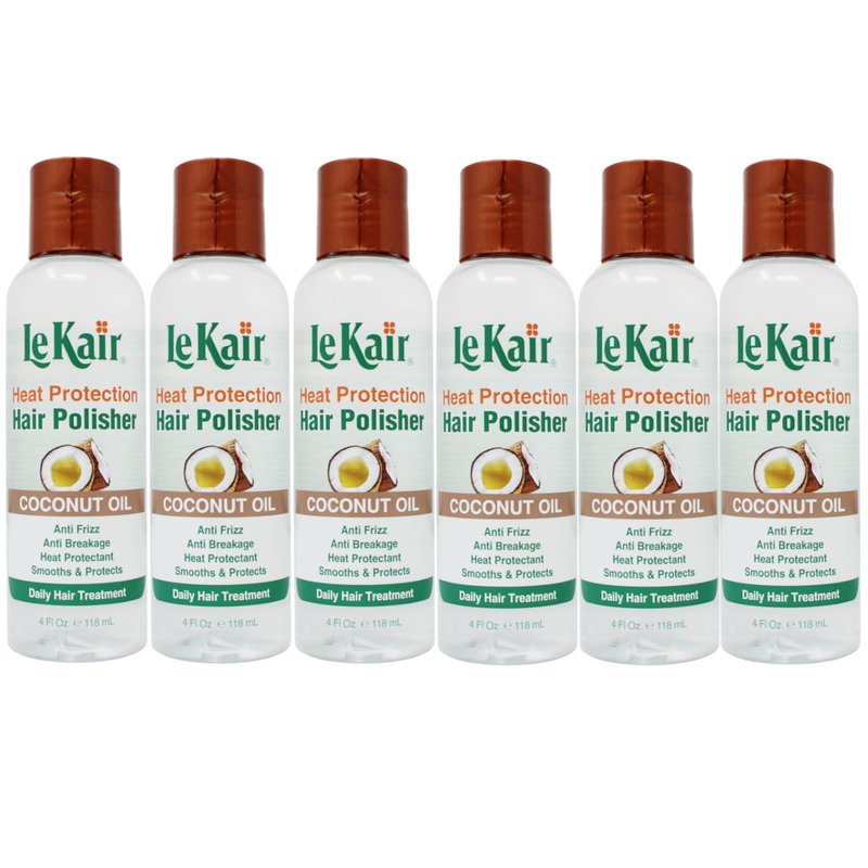LeKair High Heat Protection Hair Polisher - Coconut Oil, Anti Frizz, Anti Breakage, Heat Protectant, Smooths & Protects, Daily Hair Treatment 4 Fl Oz - 6 Pack