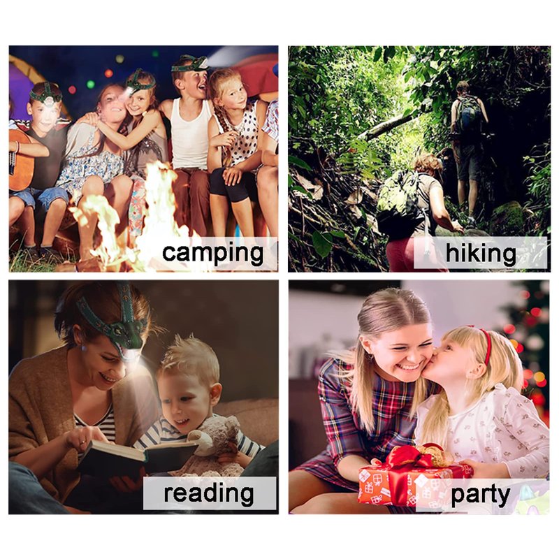 - [Gift for kids] This dinosaur headlamp with a cute and beautiful package is a perfect gift for boys and girls to explore nature, suitable for birthdays, Easter, Halloween, Thanksgiving, and Christmas. It is an ideal gift for camping, hiking, hunting, and other outdoors activities.