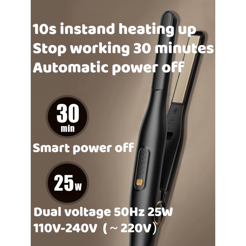 Mini flat iron for short hair, Men's professional hair straightener, designed for short-haired individuals Dual use for dry and wet, flat iron curling iron in one Five temperature adjustable, ceramic glazed panel, negative ion emission 30 minutes of inactivity, automatic power outage, 10-second rapid heating travel flat iron