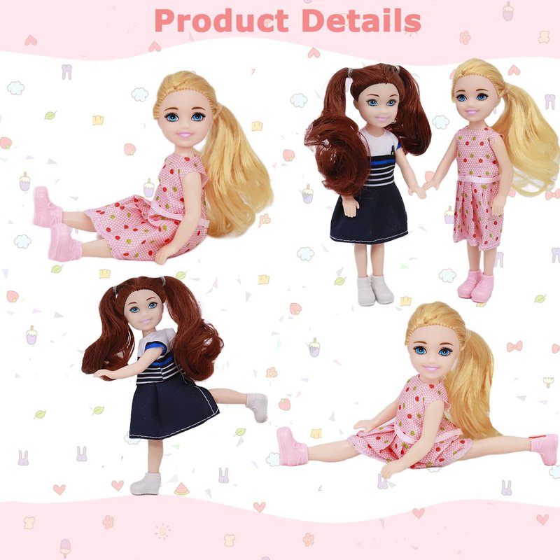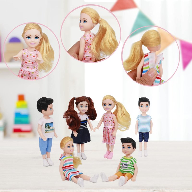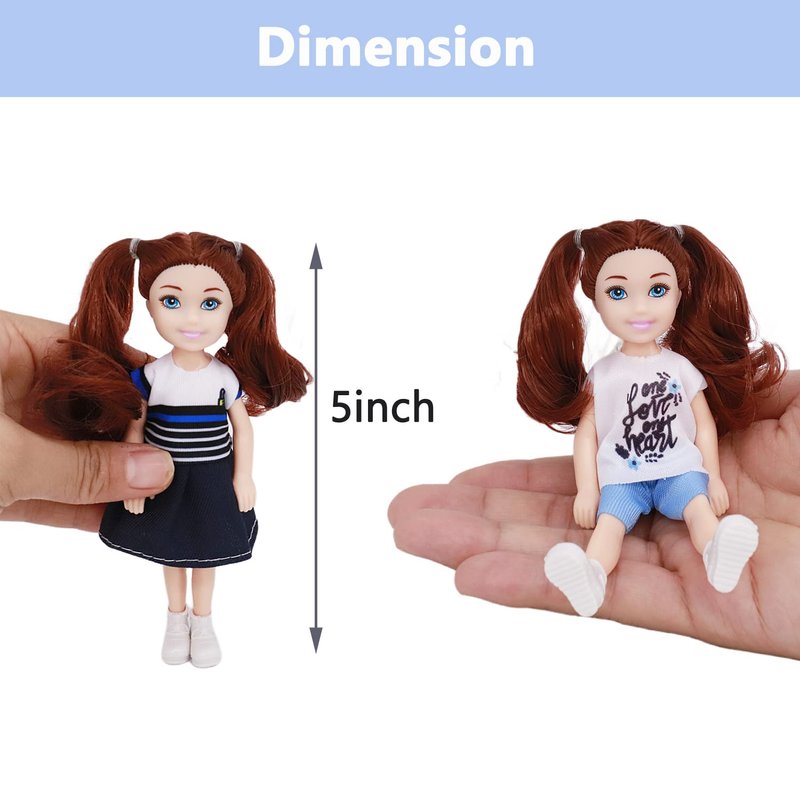 - πEach miniature doll measures about 5-inches tall. Ages 3 years old and Up.Assorted clothes bring about more fun. Other accessories photographed like suitcase, bags are not included.