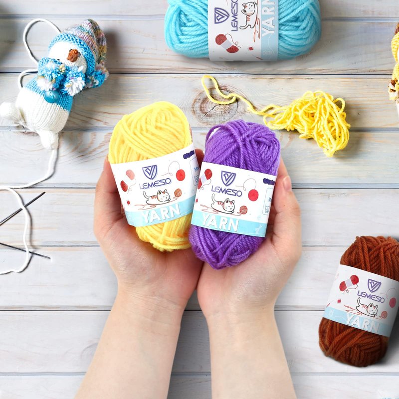 LEMESO 12 Acrylic Yarn Skeins Mini Craft Yarn, 12 Colors Starter Crochet Bulk Yarn for Child, Adult Knitting Crochet Crafts (12 x 15g)