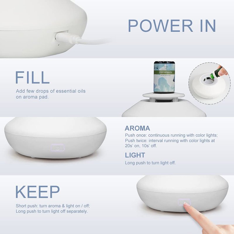 LEMON + Co. Humidifier Ultrasonic Aromatherapy Waterless Diffuser White Cool Mist Air Aromatherapy Essential Oil Diffuser for Office, Home, Bedroom, Living Room, Yoga, Spa; Multiple Lighting Options