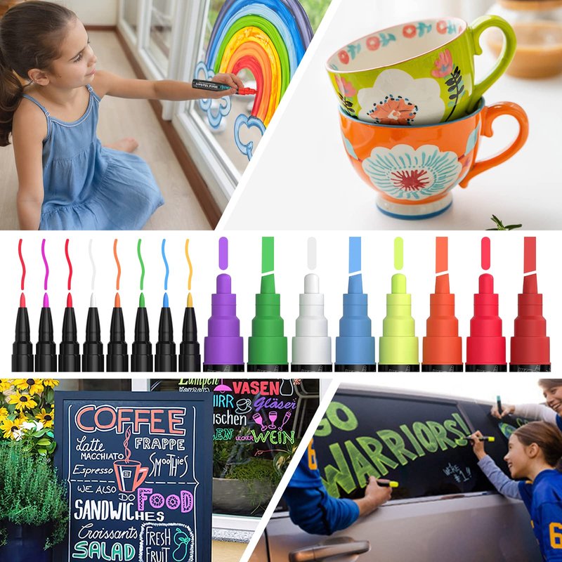 - 【 Premium & Reversible Tip 】- High-quality ink and 6mm Reversible Tip ( Round Nib or Chisel Nib ) make sure you can draw in fine and bold line. Lenski Chalk markers are suitable for many occasions, such as blackboard (wet erase), glass & mirrors (dry erase) and permanent on porous surfaces.