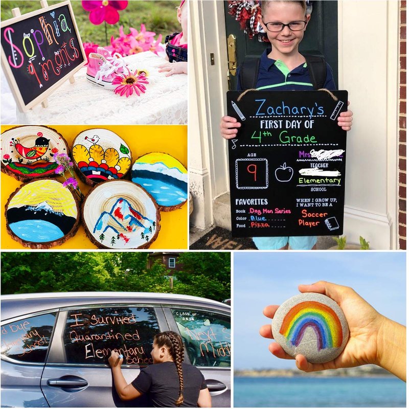 - 【 Easy to Clean & Odor Free 】This first day of school chalk paint let kids creating perfect memories and photos, non-toxic and water based liquid chalk markers can be removed easily with a dry or wet cloth making clean up a breeze!