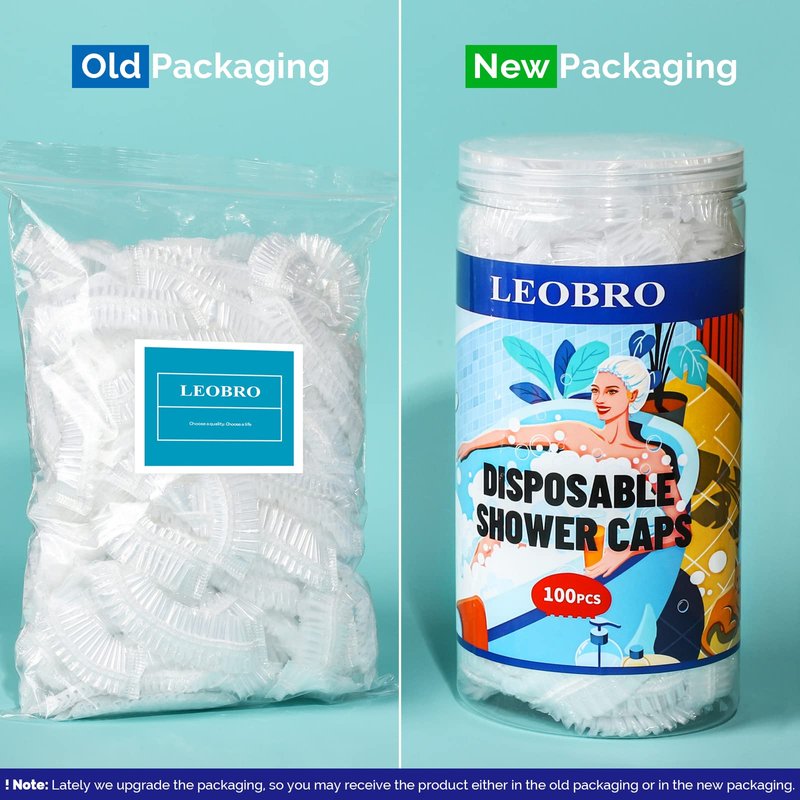LEOBRO Disposable Shower Caps, 100 Pack Shower Caps, Shower Cap for Women Waterproof, Disposable Clear Plastic Shower Cap for Women, Plastic Caps for Hair Treatment, Thick Bath Caps for Travel Salon