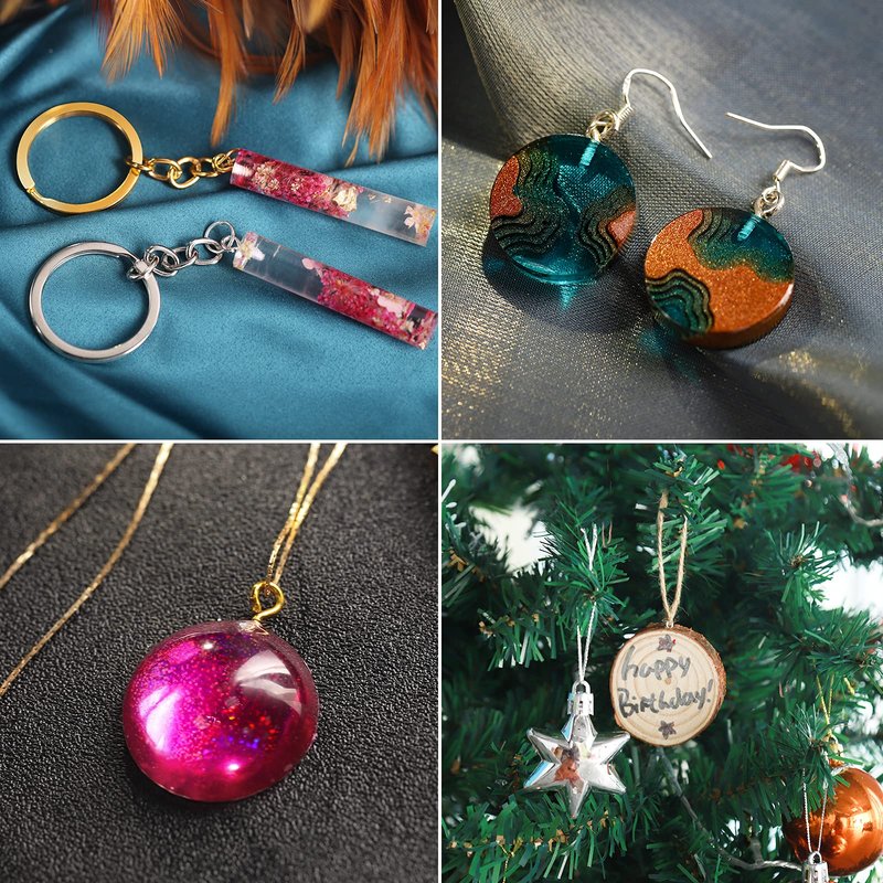 - 210 PCS Keychain Supplies: 100 pcs screw eye pins (gold&silver, 50 for each), 100 pcs jump rings (gold&silver, 50 for each), 10 pcs key rings with chains (gold&silver, 5 for each), helpful for attaching resin pieces and other art pieces, to create keychains, jewelry, Chrismats decors and so on.