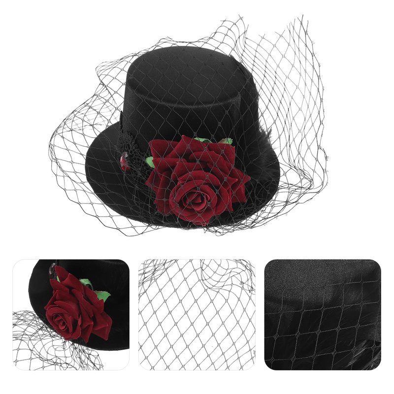 - Retro Style: The gothic black little top hat with classic red rose decoration makes it look more attractive and cute. for your party dress