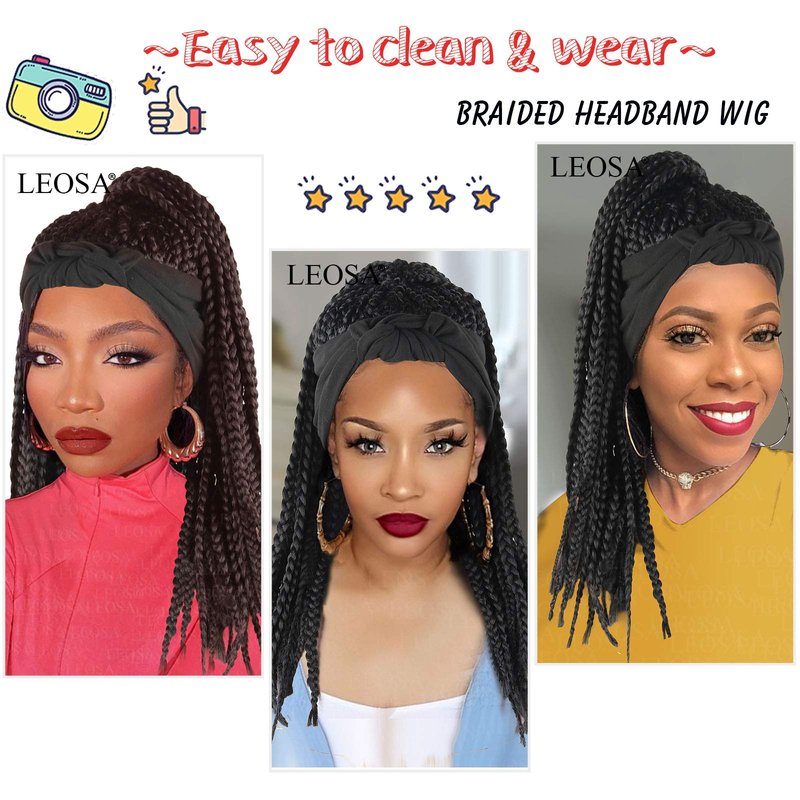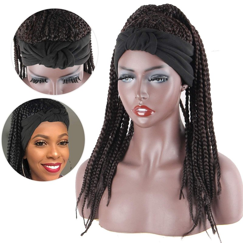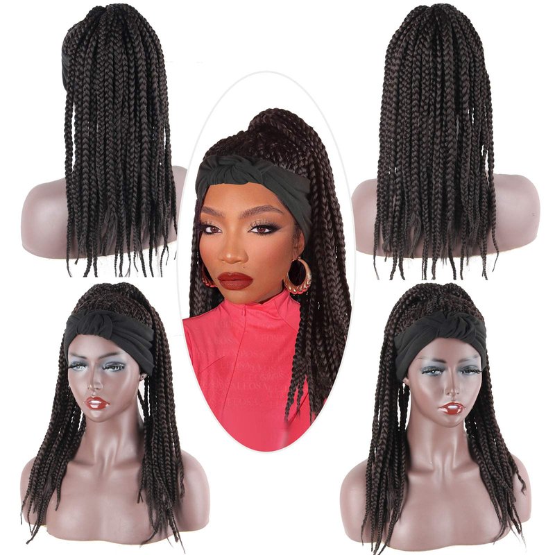 - 【 Braided Headband Wig Product Advantage】:Brown Box Braid Wig ,Get Simple, Beautiful, quick, attractive and trendy easy hairstyle for African girls and easy Change Your Hair Style by Head-Wrap Wig Hair.
