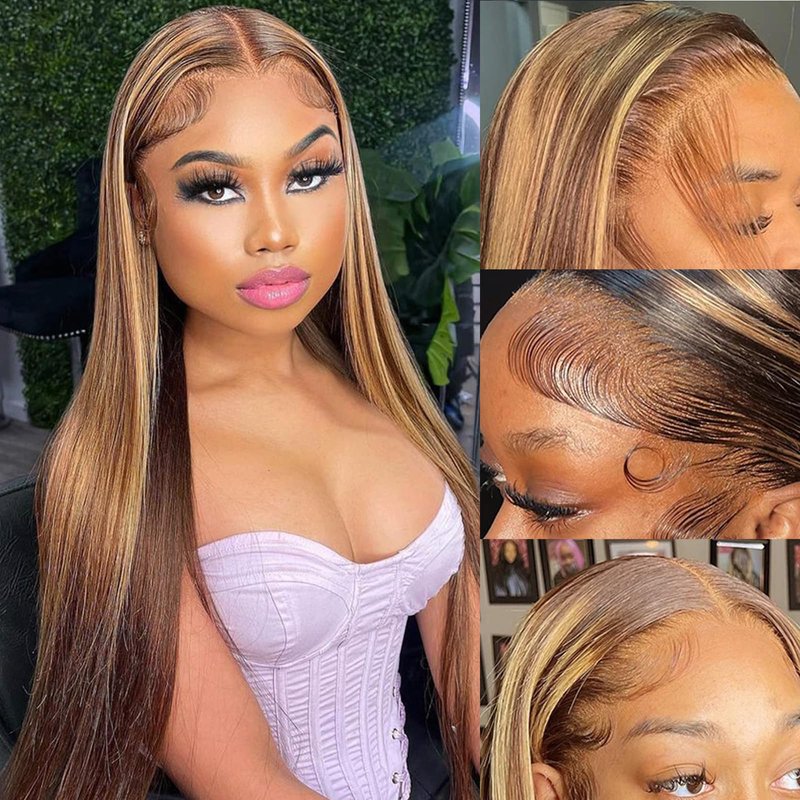 - ❤️High Quality Hair Material: This is Highlighted Straight lace front wig,smooth & soft, minimal shedding, tangle free,Simulated Scalp,Full And Thick.