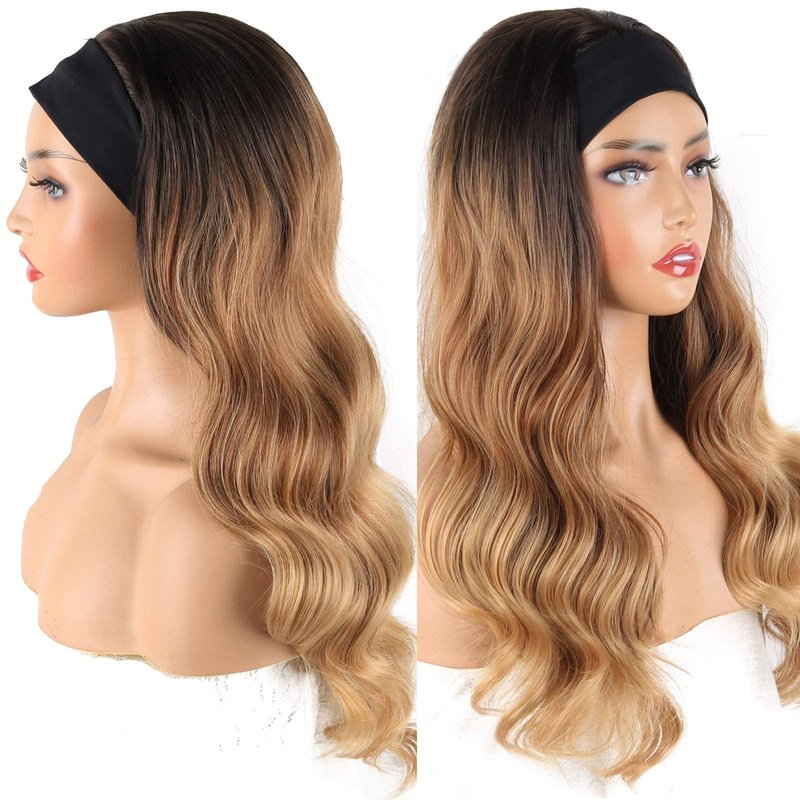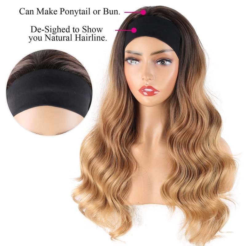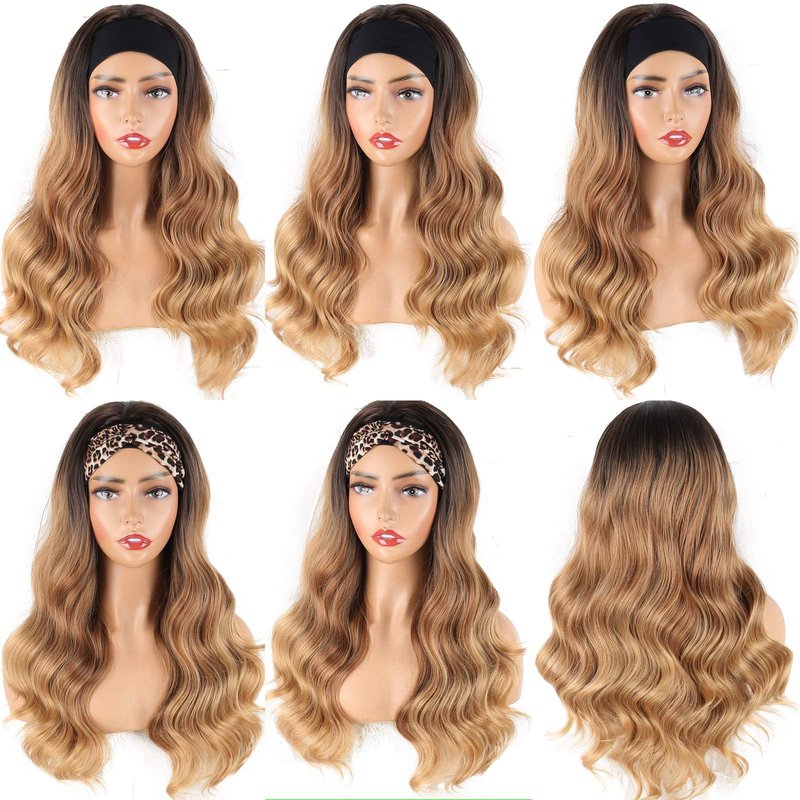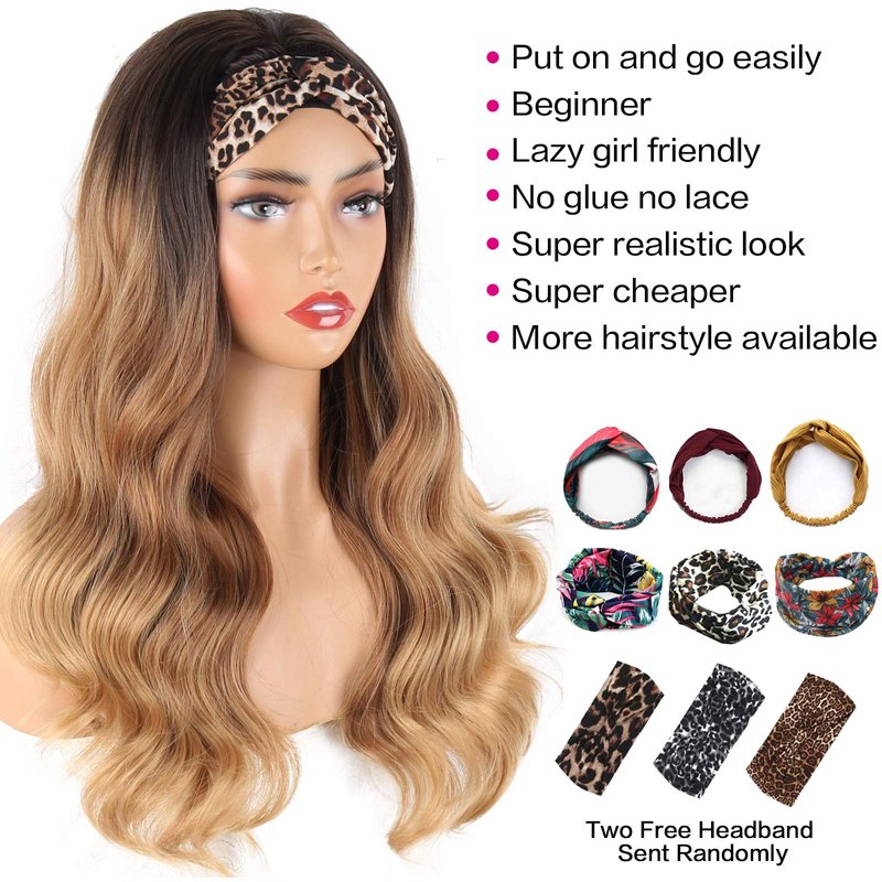 - 【About Headband Wigs】:This is ombre blonde wig headband wig for Black Women,Length: About 24 Inches; Weight: 200g;Colors:Ombre Brown#; Scarf material is comfortable, good air permeability.it can be used for very long time and repeatedly.