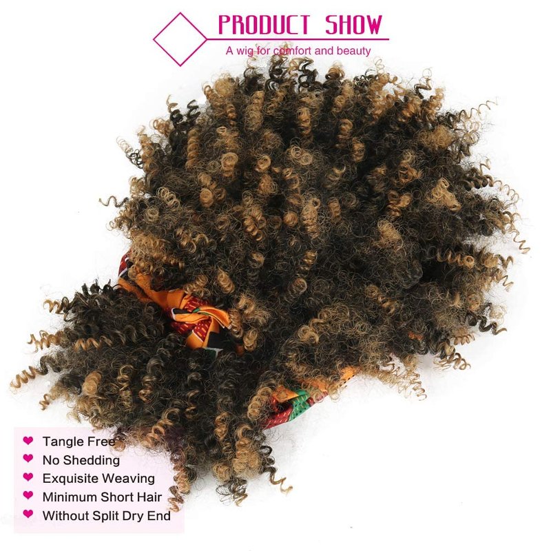 - 【High-Quality Materials】:This Turban Wrap-Wig Updo Kinky Curly Afro Puff with Bangs Drawstring Wigs. Made of Light and High Quality Material Which Makes the Turban Afro Puff Head-Wrap Wig Extension Fluffy
