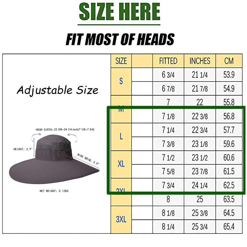 - SIZE--Adjustable size fits 22 3/8"-24 1/4" (7 1/8-7 3/4) head girth,Wide Brim 5.9",Net Weight 0.12kg, Height 3.9"
