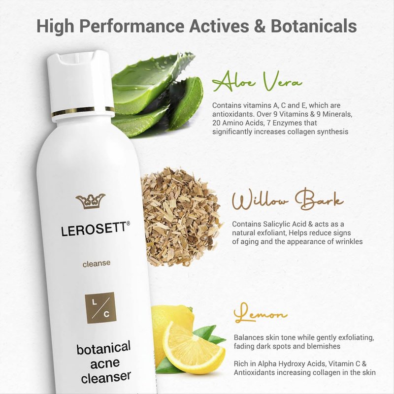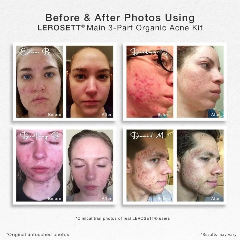 - 🌱 Gentle. Plant-Based Acne Kit: LEROSETT works differently. This 3 part skin care system works to manage acne, breakouts, blemishes, and blackheads. Our chemical-free spot treatment & clay mask helps to quickly clear breakouts; the acne cleanser uses 60% calming aloe vera gel, and the moisturizer matte is lightweight, oil & shine-free. —Vegan. Professional-Grade. Cruelty-Free.